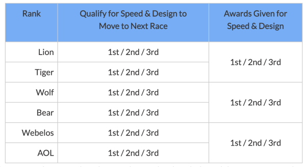 Every unit and district race is encouraged to follow these updated rules so that there is consistency on qualifying for the Council Pinewood Derby.